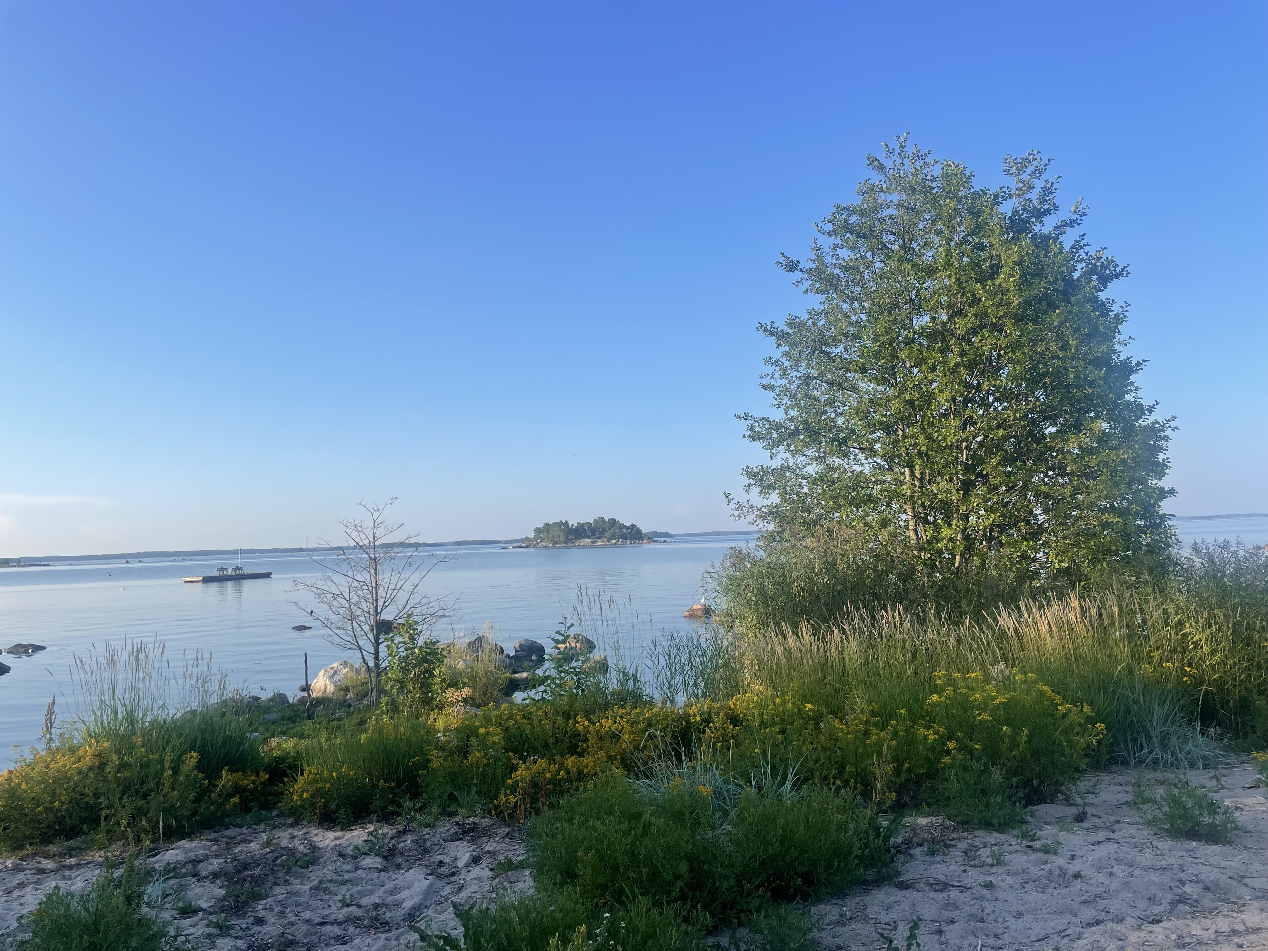 Kaunissaari is a tiny island located in the archipelago of Sipoo, almost on the outer sea, a gem of Helsinki in Finland. Only in summer, a wooden ferry will bring you from the mainland to this place. Kaunissaari has beautiful rocky beaches and lush nature, with wild blueberries bushes to feast on. In summer 2025 I spent a weekend on Kaunissaari with a notebook and a pack of crayons and started doodling sketches that have become the patterns of this collection.
